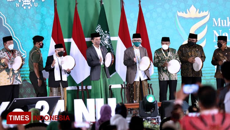 TIMES Pandeglang/Presiden Jokowi (Joko Widodo) membuka secara resmi Muktamar Ke-34 Nahdlatul Ulama di Pondok Pesantren Darussa’adah, Gunung Sugih, Lampung Tengah, Rabu (22/12/2021). (FOTO: Moh Ramli/TIMES Indonesia)